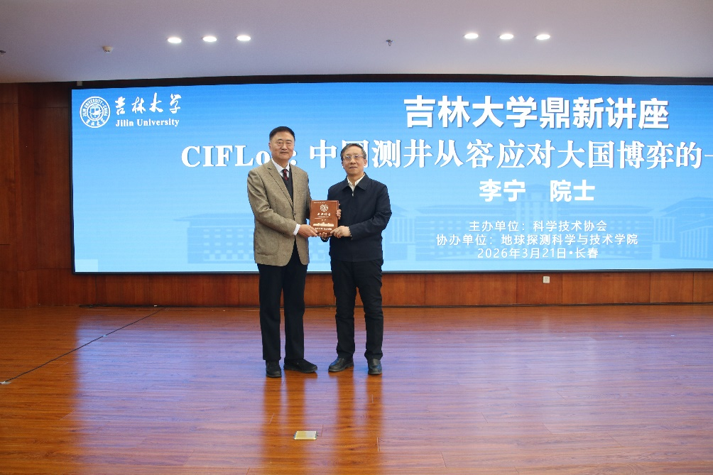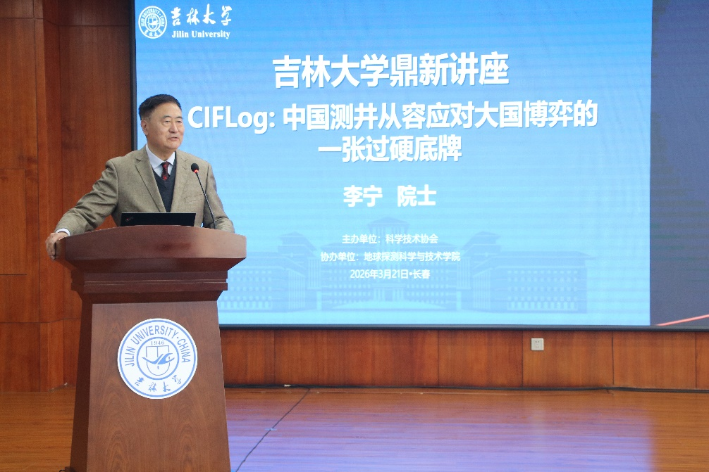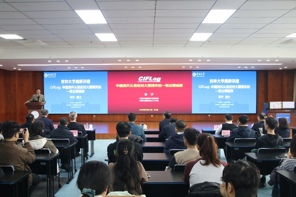 3月21日下午,中国工程院院士、中国石油勘探开发研究院李宁教授做客吉林大学80周年校庆鼎新讲座,以“CIFLog:中国测井从容应对大国博弈的一张过硬底牌”为题作学术报告。学校党委常委、副校长边铁,中国工程院院士林君教授以及地学部师生代表参加讲座。讲座由地球探测科学与技术学院院长冯晅主持。