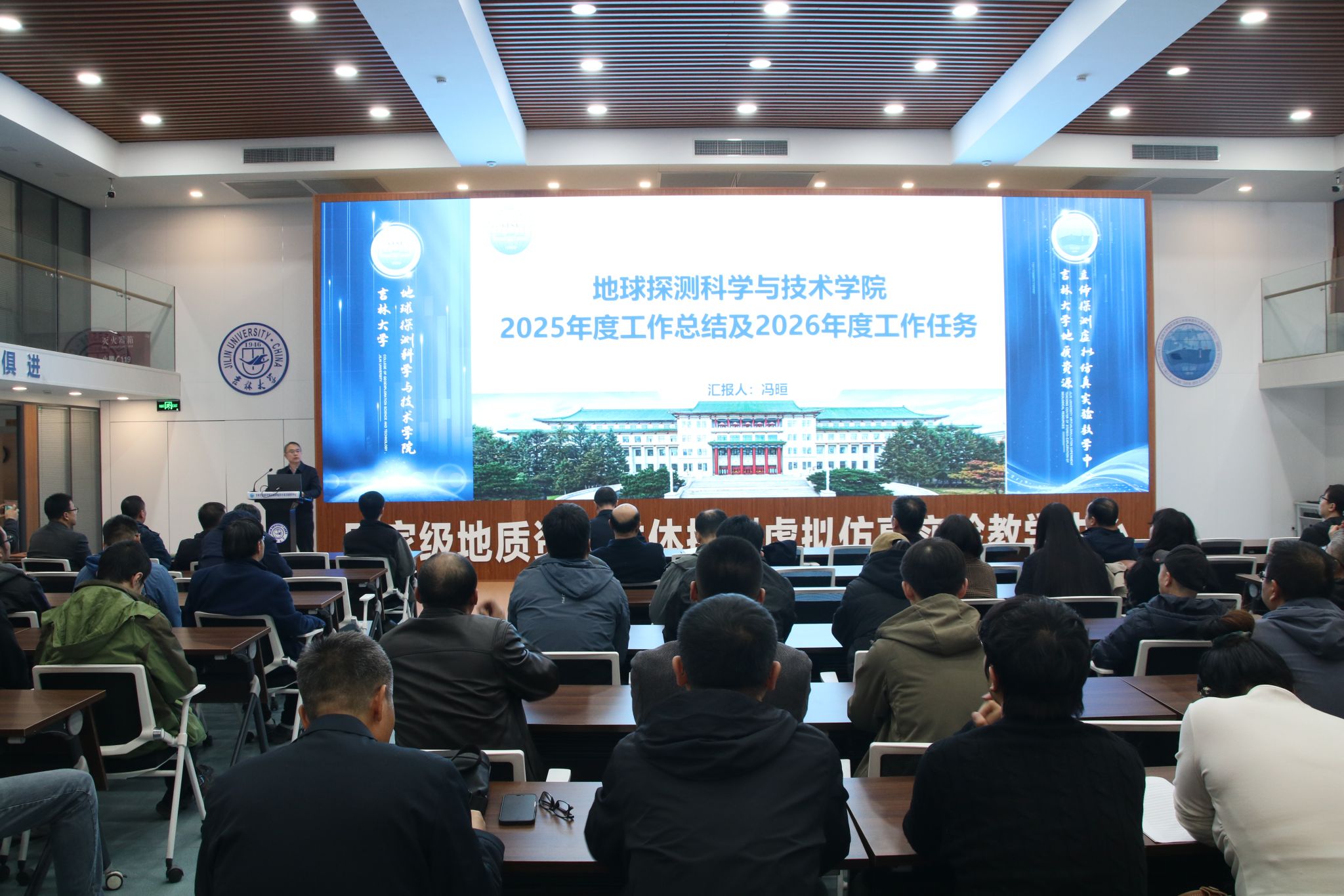 会议全面回顾了学院“十四五”期间主要任务完成情况,总结了2025年在党的建设工作、学科建设、人才培养、科学研究、队伍建设、国际合作与社会服务等方面取得的主要成绩。2025年,学院获批遥感科学与技术学科试点建设单位;科研到款经费首次突破亿元大关,主持深地国家重大科技专项项目总预算超3亿元;2名教师获青年科学基金(B类)支持,引进瑞典皇家科学院院士荣获中国政府友谊奖;获批国家级一流课程1门,获国际勘探地球物理学家学会杰出教育奖,毕业生就业去向落实率连续两年突破90%;承办了第十届全国大学生创新杯地球物理知识竞赛、第七届全国定量遥感学术论坛和第三届“高等学校地球科学虚拟仿真、人工智能和大数据与拔尖人才培养研讨会”等高水平学术会议及竞赛活动,综合实力和学术影响力持续提升。
