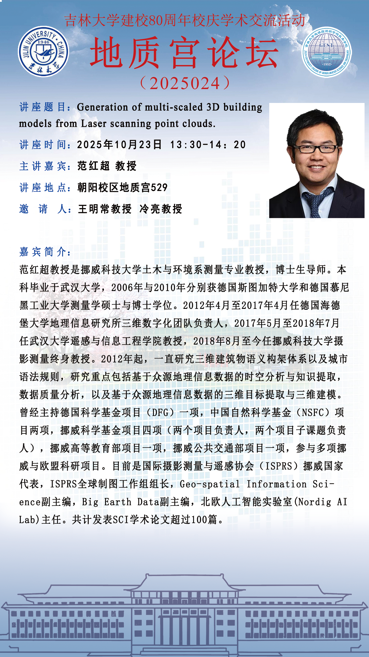 地探学院·地质宫论坛(2025024)— 挪威科技大学范红超教授学术报告