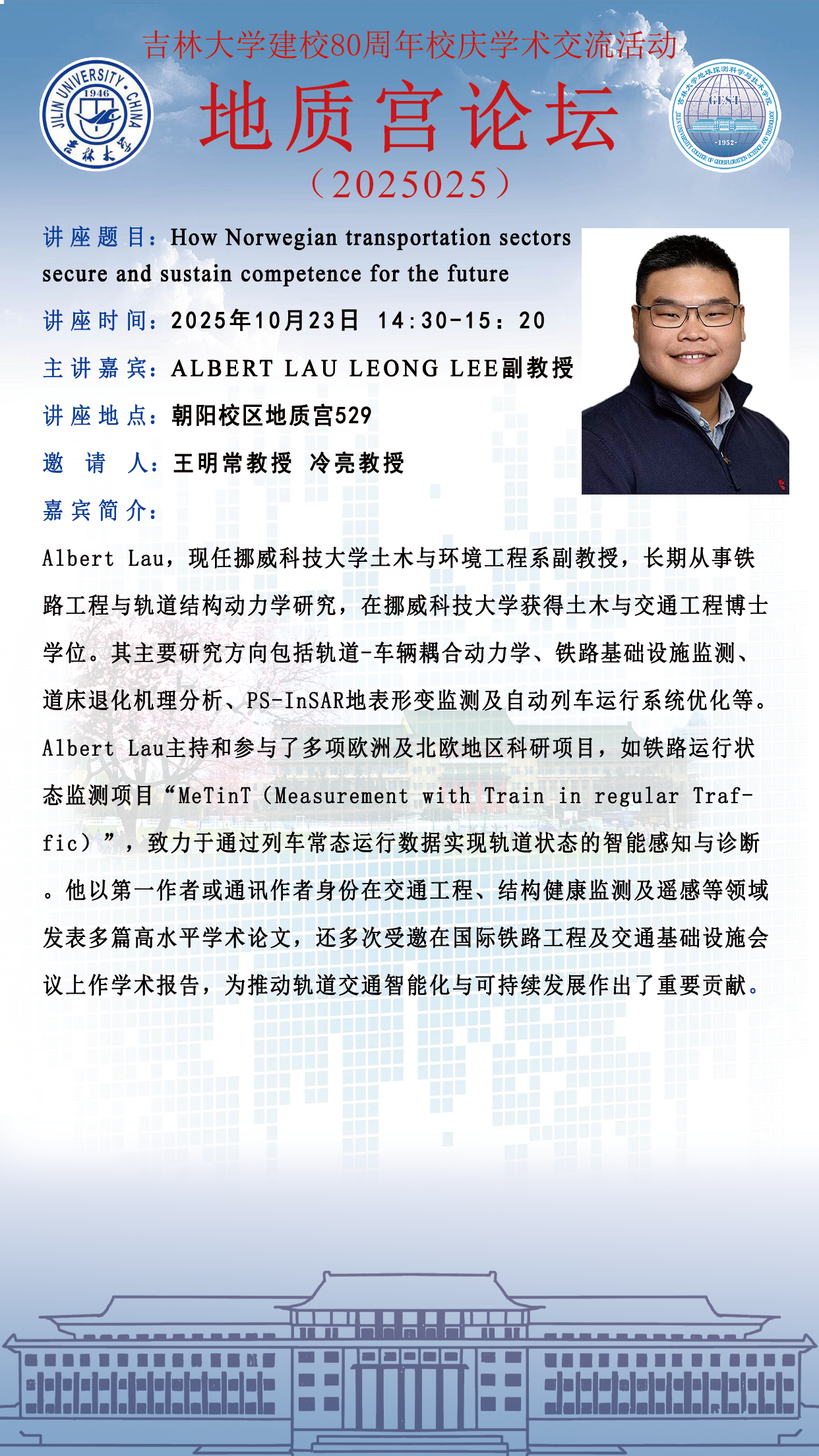 地探学院·地质宫论坛(2025025)— 挪威科技大学Albert Lau副教授学术报告