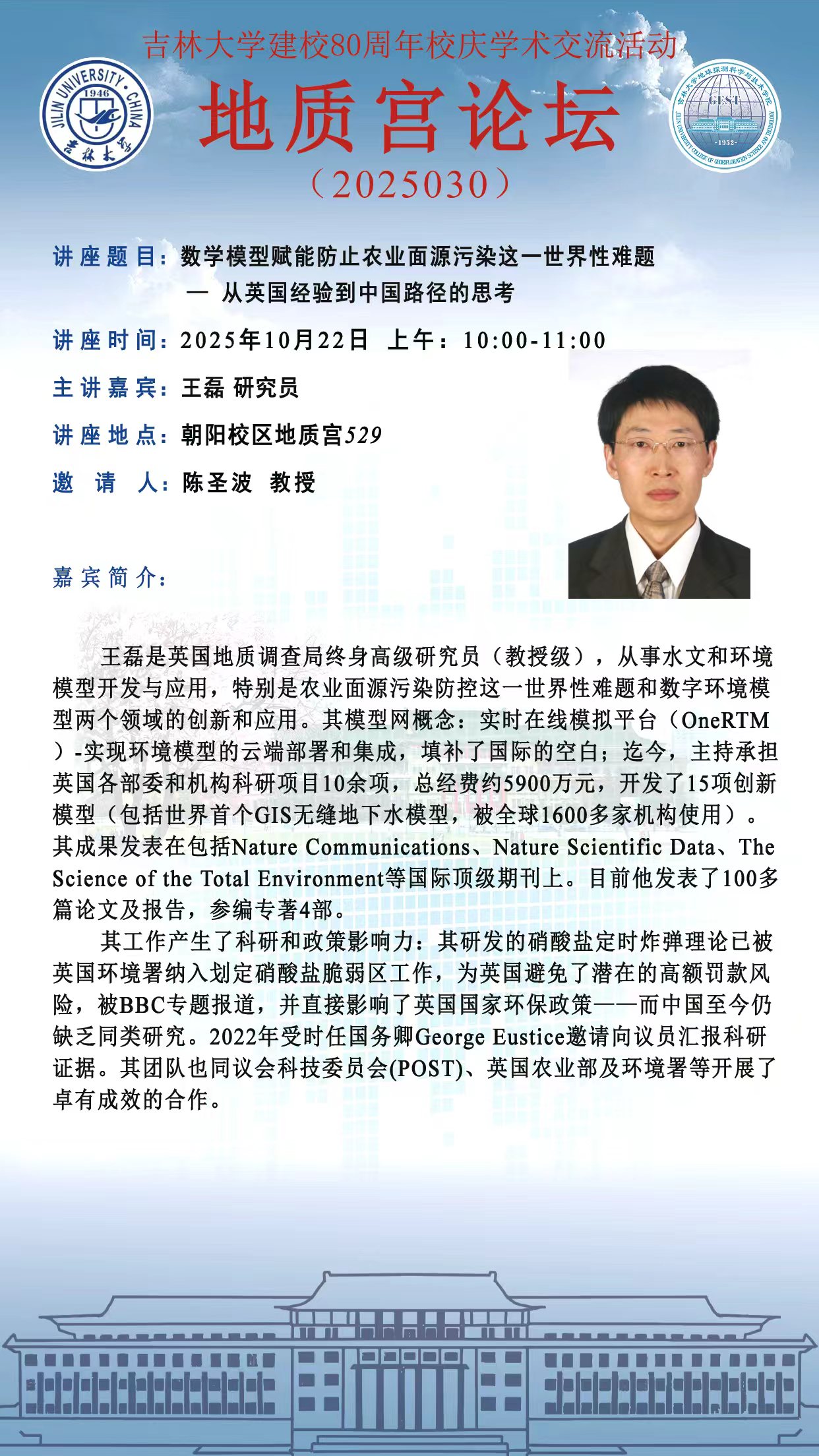 地探学院·地质宫论坛(2025030)— 英国地质调查局终身高级研究员王磊博士学术报告