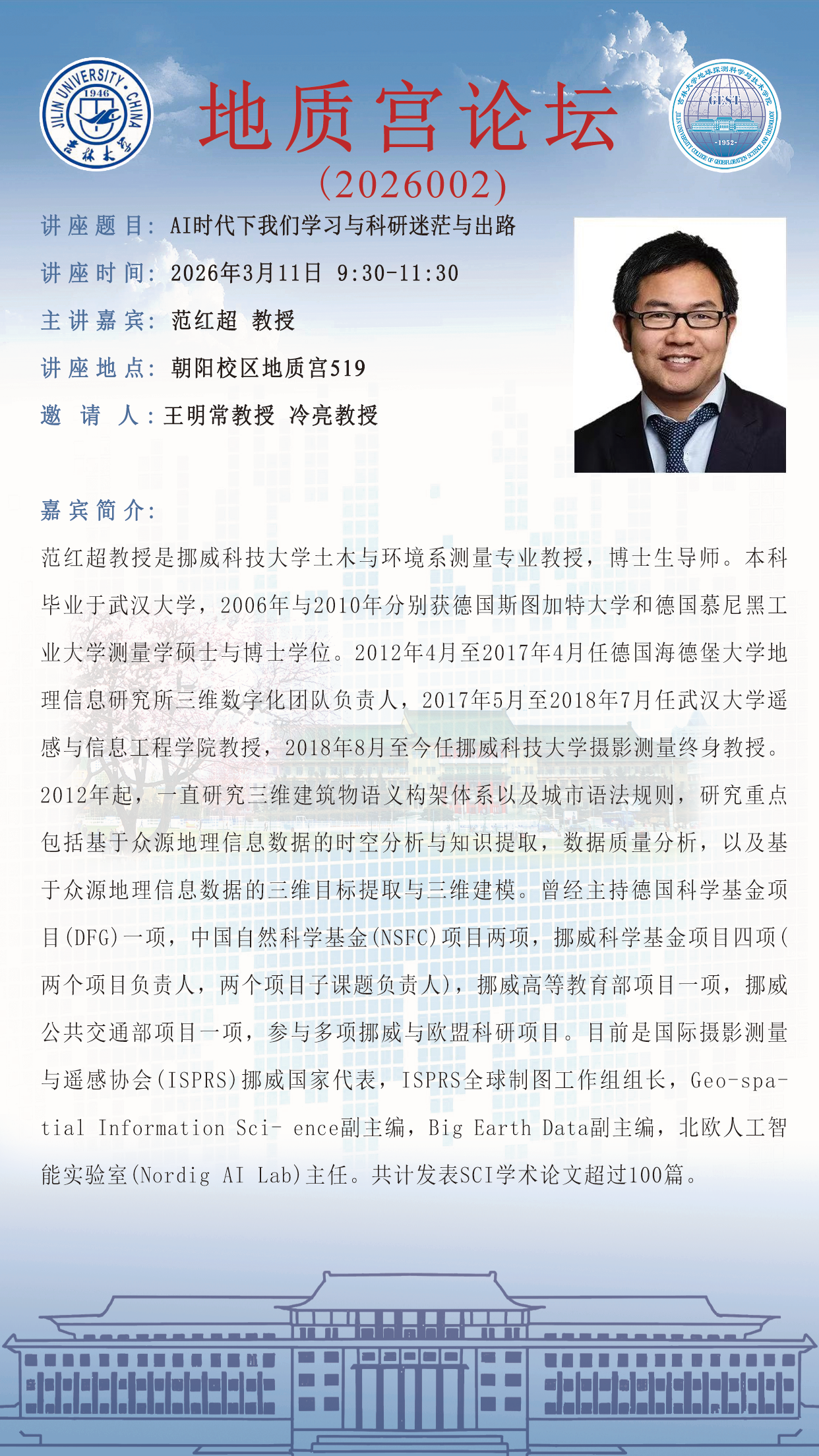 地探学院·地质宫论坛(2026002)—挪威科技大学范红超教授学术报告