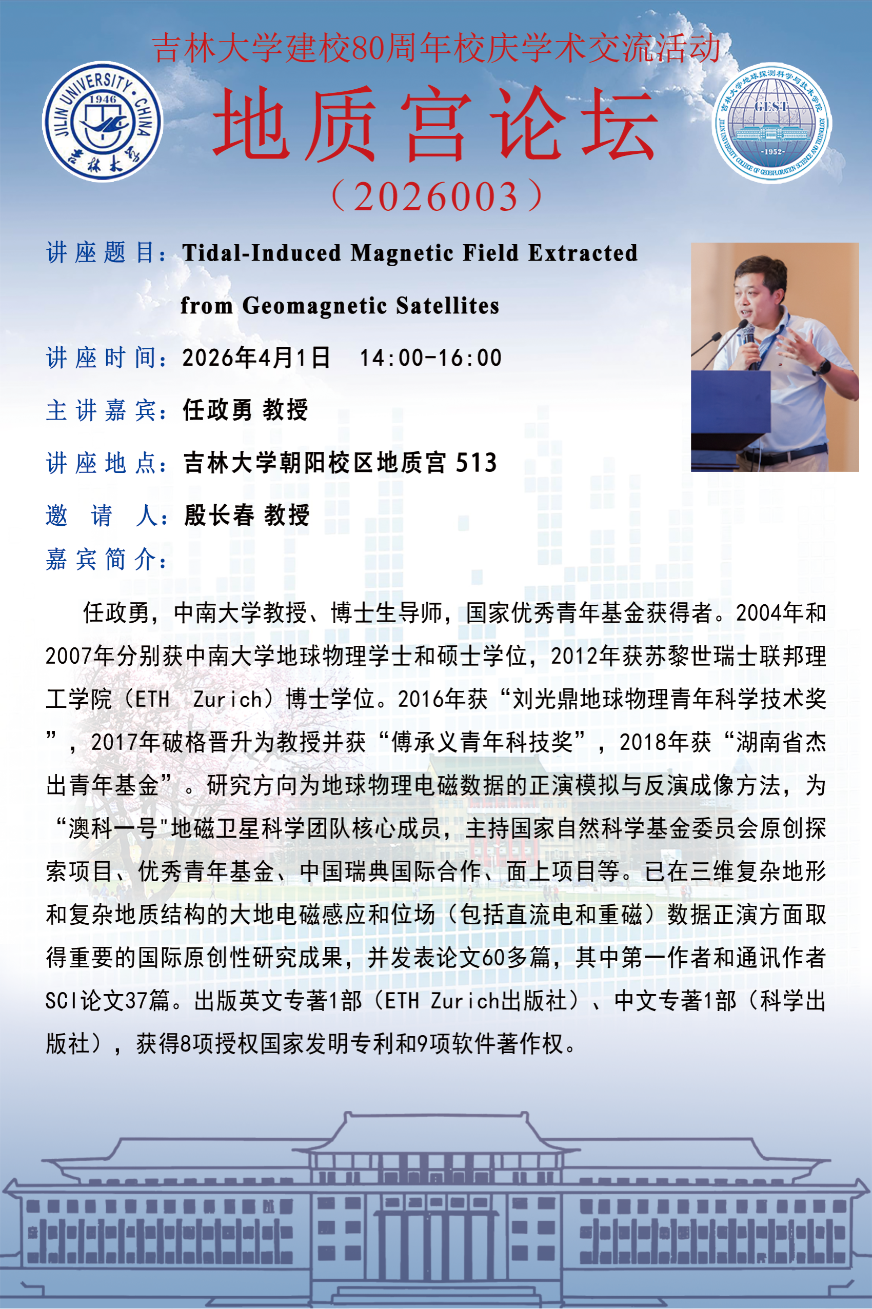 地探学院·地质宫论坛(2026003)—中南大学任政勇教授学术报告