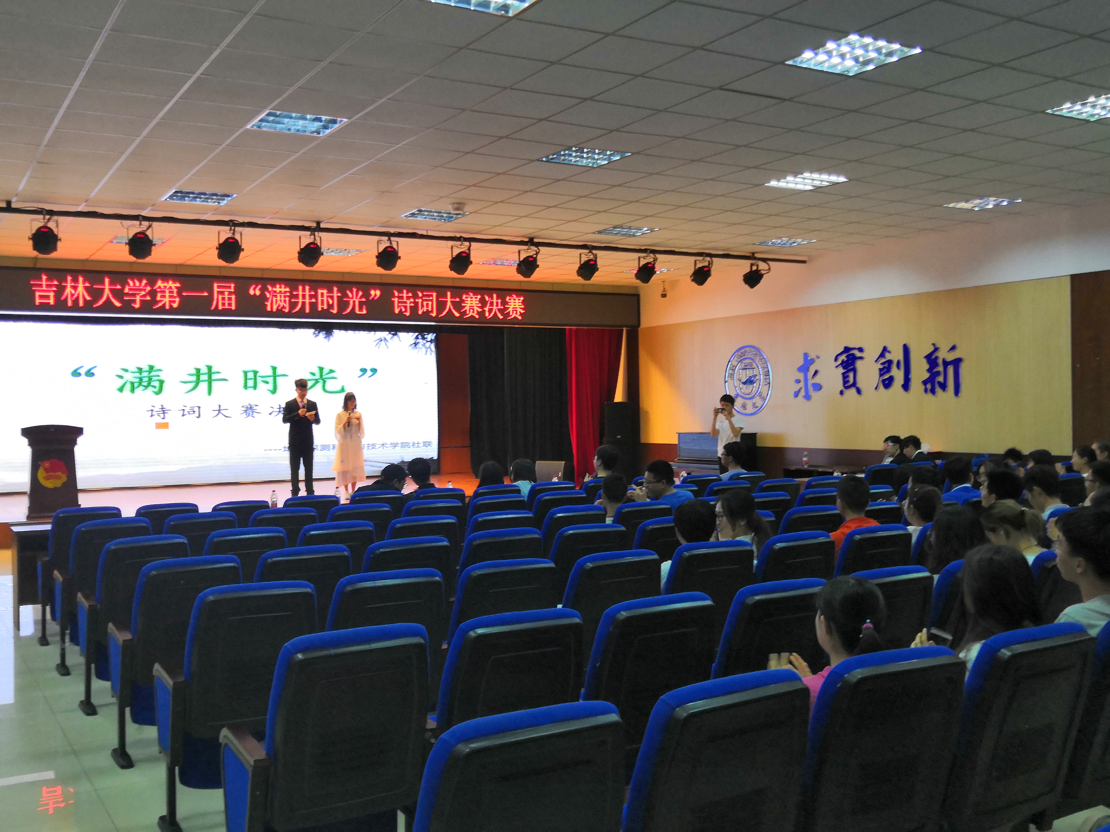 为培养同学们对于古诗词的兴趣,激发学生的读书兴趣和热情,接受优秀传统文化的洗礼,由地探学院学生社团联合会举办的吉林大学第一届"满井时光"诗词大会决赛于2019年5月17日18:30在中心校区田家炳礼堂举办,来自不同学院的六支代表队进入决赛。